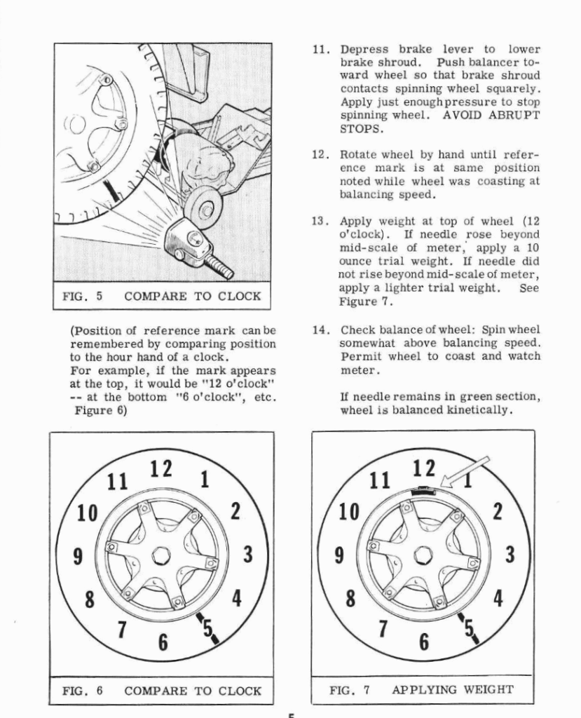 - Check the balance of the wheel: Spin wheel somewhat above balancing speed. Permit wheel to coast and watch meter.